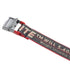Grey and red mini industrial belt with silver buckle. "Off-White™ BELT" carved on buckle. Red buckle detail.