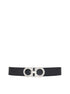 A timeless icon of elegance and luxury with bright, modern accents for a fabulous fresh classic that is the new forever piece in your wardrobe. The soft feel of the hammered calf leather has a natural texture on one side, and the other side is sleek and smooth. The reversible construction opens up more styling options. The Gancini buckle is in the signature brushed palladium finish for a distinctive finishing touch. Adjustable length.