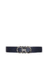 A modern update on understated elegance – this belt is fashioned from natural grained calfskin leather with an exquisitely soft texture. The signature Gancini buckle is sculpted from palladium finished metal for a touch of sophistication. The adjustable design can be cut to size to ensure the perfect fit.