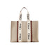 •  Tote bag in linen canvas & shiny calfskin with Chloé logo
