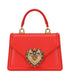 Small top-handle Devotion bag comes in plain calfskin. Feminine and versatile, it is distinguished by the exclusive bejeweled heart fastening and the shoulder strap inspired by the techniques of high quality jewelers.