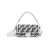 Iconic medium Baguette bag, made of white canvas with a black FF motif in a raised embroidery and a decorative FF clasp.