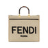 Medium Sunshine shopper made of natural-colored woven straw with a moss-stitch effect, with black straw FENDI ROMA embroidery and stiff tortoiseshell-effect plexiglass handles.