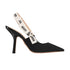 The J'Adior slingback pump is a prime example of Dior's savoir-faire. Crafted in the Christian Dior Italian ateliers, the silhouette is distinguished by black technical fabric. The two-tone embroidered 'J'ADIOR' ribbon is embellished with a flat bow and the 10 cm comma heel offers the final elegant touch for an evening look.- 'J'ADIOR' two-tone embroidered cotton ribbon