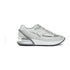 • First 1 sneakers with laces and diagonal F-shaped sculpted corrugated soles. Made of light gray and white tech fabric. Framilon inserts. Customized with screen-printed Fendi lettering on the tongue and the side.