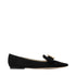 The black suede Gala pointed toe pumps is a chic combination of fine craftsmanship and style. This flat design boasts an elegant pointy toe, an eye-catching soft exterior and a charming bow design adorning the toe. Slip into Gala flats for a gallery opening or work party.