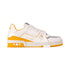 • The cult LV Trainer sneaker, originally created for men by Virgil Abloh, is reinterpreted for women. The design was inspired by vintage basketball sneakers, whose spirit is captured in this bicolor version in calf leather with perforated detailing. It bears the Louis Vuitton script signature on the side, while the outsole is decorated with Monogram Flowers.