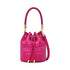 - A coveted addition to our leathers is this bucket bag with branded embossing. The textured rope handle and drawstring are fastened by metallic hardware. Fitted with crossbody functionality to go handsfree, its construction also allows it to sit upright on it's own while holding your contents in place.