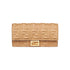 • Baguette continental wallet with snap closure. Spacious and well organised, with two gusseted pockets, a zipped pocket, ten card slots and two flat side pockets. Made of beige nappa leather. Embellished with an embossed FF motif. Gold-finish metalware.