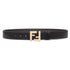 Reversible belt with square pin and double loop. One side is made of black Cuoio Romano leather, the other of smooth leather in the same color. This style can be customized with interchangeable FF buckles.