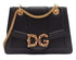 Versatile and elegant, the small shoulder bag of the DG AMORE line is made of smooth calfskin characterized by a compact and contemporary design. It has a semi-rigid rib construction with particular relief profiles. The model features the unmistakable vintage brass logoed clasp embellished with pearls and enamelled cartouche: