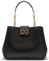 Large DG AMORE satchel in soft calfskin. Practical and spacious, it features a round shape and a semi-rigid, ribbed construction with distinctive raised trims. The style features the unmistakable branded vintage brass fastening embellished with pearls and enameled scroll:
