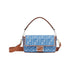 Iconic medium Baguette bag made of light blue denim with a raised tone-on-tone embroidered FF motif. Finished with a brown leather trim and embellished with an FF clasp.