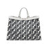 Medium X-Tote bag made of white canvas, with a black raised embroidery FF motif. Finished with white leather and decorated with a twist lock.