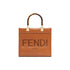 Small Sunshine Shopper bag made of brown leather with hot-stamped “FENDI ROMA” and stiff tortoiseshell plexiglass handles.