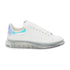 White smooth calf leather lace-up sneaker featuring a transparent oversized sole and iridescent transparent fabrication layered over the white calf leather heel counter. The sneaker features large flat laces and is finished with an Alexander McQueen signature on tongue and heel counter. Oversized rubber sole with signature stamp design. The sneakers come with an additional lace set.