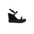 - Maison Christian Louboutin's Pyraclou is a wedge sandal that stands out from the crowd. It has two slender straps adorned with glossy pyramid-shaped signature spikes. The bottom of the 110 mm wedge is also adorned with a row of spikes and these are outlined with a decorative rope. This model showcases black patent leather and is finished with tonal lining.