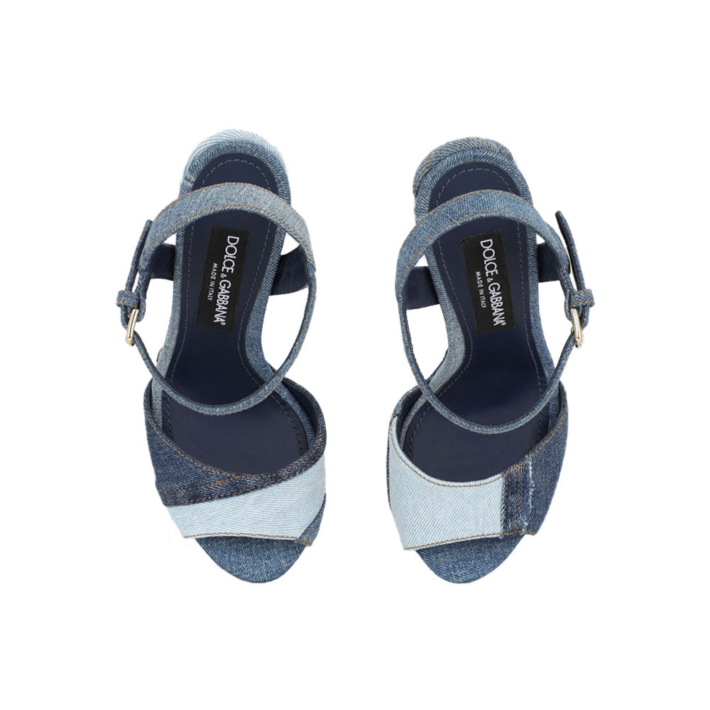 • Patchwork denim upper