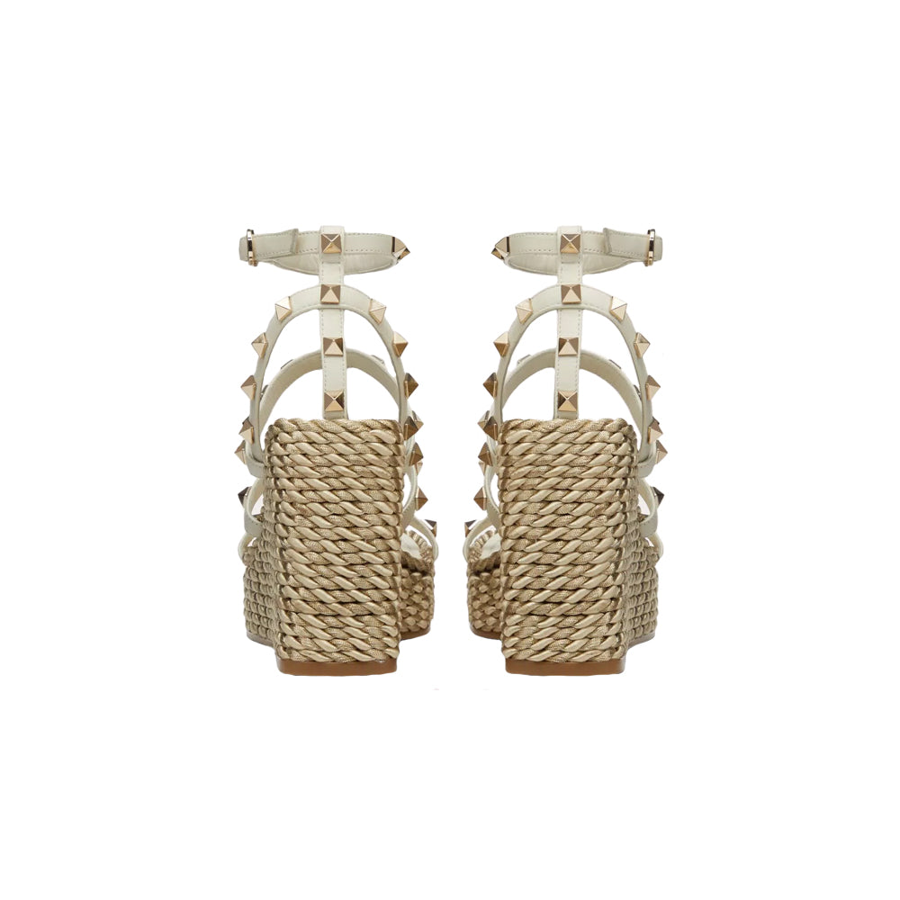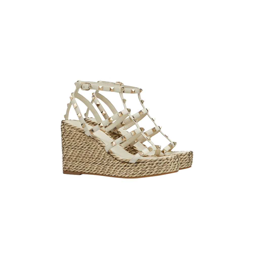 • Valentino Garavani Calfskin ankle strap wedge sandal.