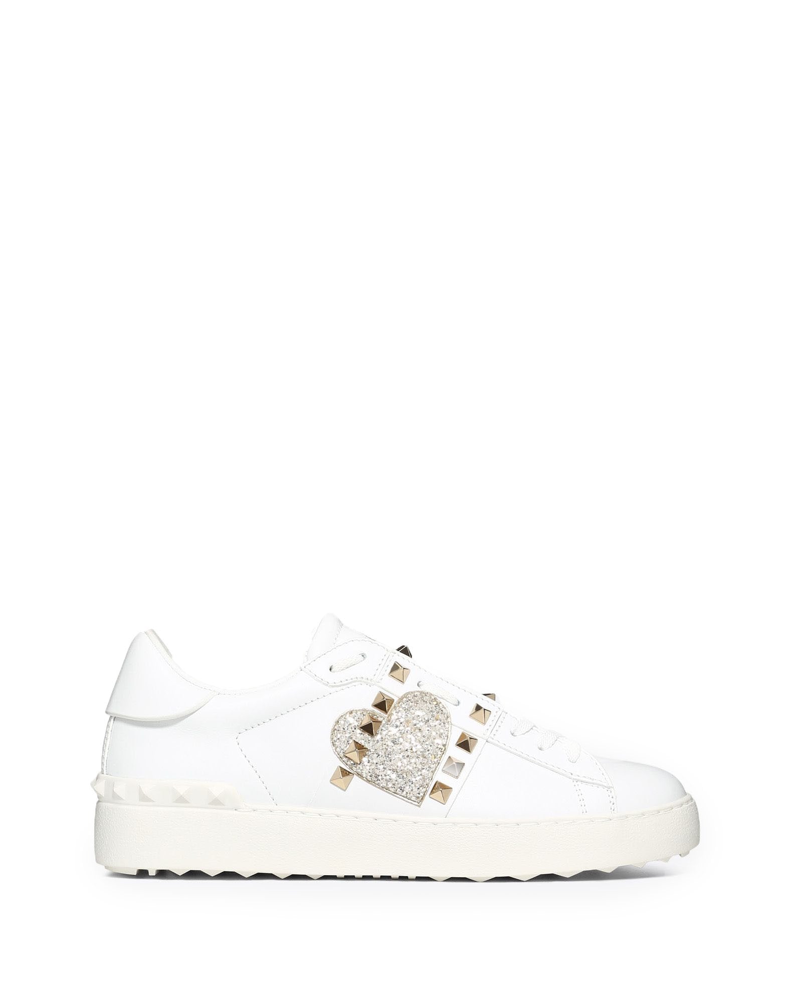 Valentino Garavani Rockstud Untitled sneaker with embroidered heart.