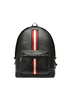Part of the new High Point collection, the black Harper backpack features durable micro-grain leather paired with contrasting Bally stripe logo, Bally tape detail and hand-stitched leather Switzerland patch. Interior has a water resistant jacquard lining with ample functionality for PC storage, cell phones, cords and other necessities.