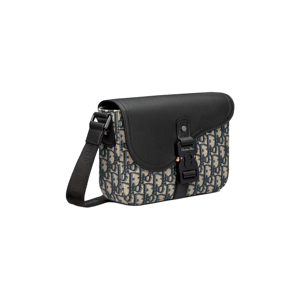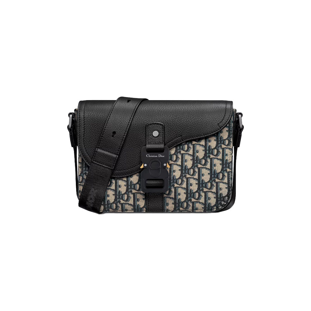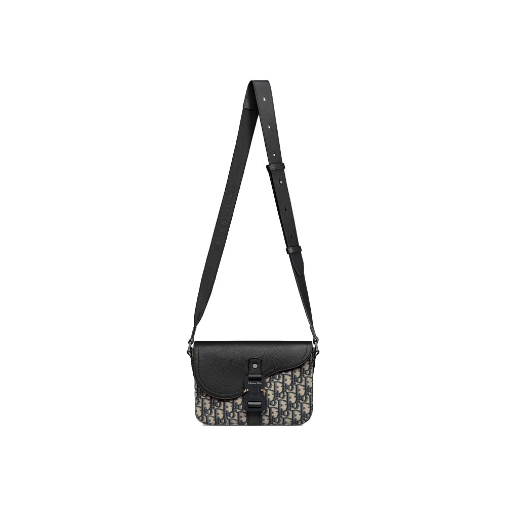 • The Saddle bag with strap is a compact and modern creation. Crafted in beige and black Dior Oblique jacquard, it features a tonal grained calfskin Saddle flap with an aluminum buckle. Its spacious interior is completed by a patch pocket to house all the essentials. Thanks to its adjustable leather and jacquard Christian Dior shoulder strap, the miniature style can be worn over the shoulder or crossbody.