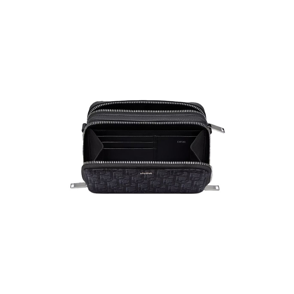 The pouch pays tribute to the Dior Oblique motif, first showcased on House creations in 1967. Crafted in black jacquard, it features a two-way zipped closure at the top and a front pocket with three card slots. An adjustable and removable black nylon jacquard Christian Dior shoulder strap is completed by two ruthenium-finish brass snap hooks. Featuring an embossed Dior logo, the style has a streamlined and spacious interior with a patch pocket to safely hold essentials. The pouch is a modern piece that will add a touch of elegance to any outfit.