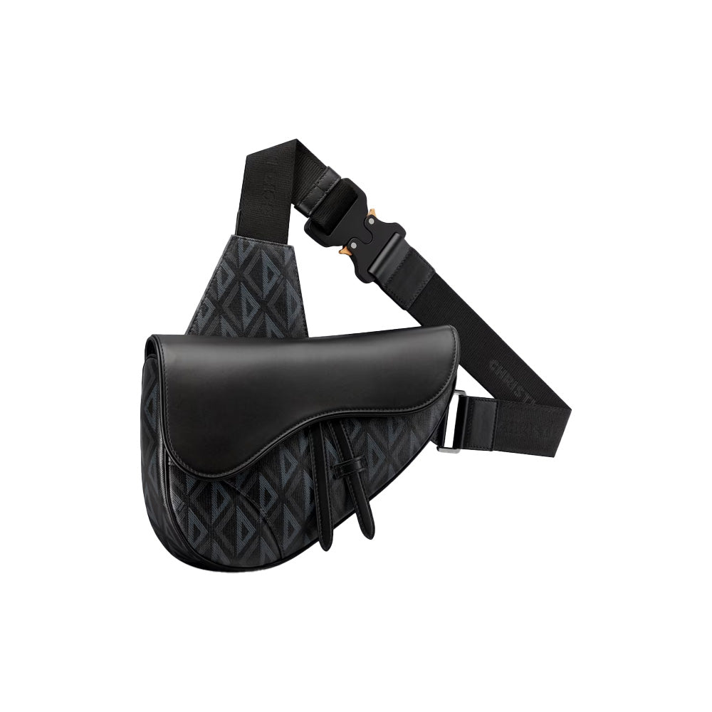 The Saddle bag presents a new take on Dior's classic piece with a black canvas version featuring the CD Diamond motif inspired by the House's archives. The style has a black smooth calfskin magnetic flap concealing a zip pocket that safely stores the essentials. The adjustable Christian Dior jacquard strap allows the bag to be worn over the shoulder or crossbody.