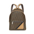 Spacious, structured backpack. The design features a metal rivet with an engraved FF logo that joins the shoulder straps and allows it to be worn as a one-shoulder style. Made of brown FF canvas with beige leather details. Finished with a black leather diagonal insert on the front zip pocket.