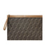 Large flat pouch with zip. Made of brown and tobacco jacquard FF motif fabric. Silver-coloured Fendi Roma lettering on beige leather and embellished with bracelet handle. Palladium-finish metalware.