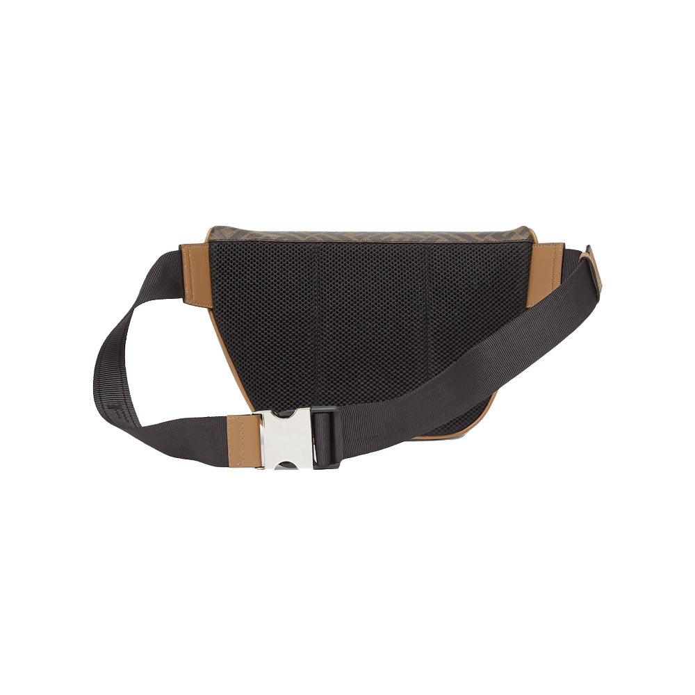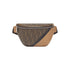 Belt bag made of beige leather and fabric with FF motif. Embellished with dark brown leather diagonal insert.