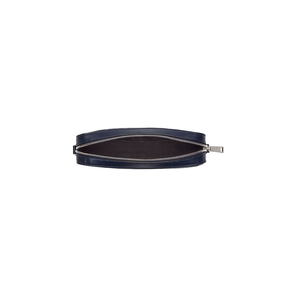 Compact shoulder bag made of jeans blue FF canvas and dark blue leather, with a dark blue leather diagonal insert. Dark blue leather interior.