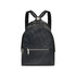 Spacious, structured backpack. The design features a metal rivet with an engraved FF logo that joins the shoulder straps and allows it to be worn as a one-shoulder style. Made of black Fendi Shadow leather with a striped texture FF motif. Embellished with a smooth tone-on-tone leather diagonal insert on the front zip pocket.