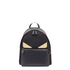 Large backpack with front pocket. Breathable technical mesh back and adjustable shoulder straps. Double slider zip fastening and inside pocket. Made of black nylon and leather. Gold-finish metal appliqués in the shape of Bag Bugs eyes.
