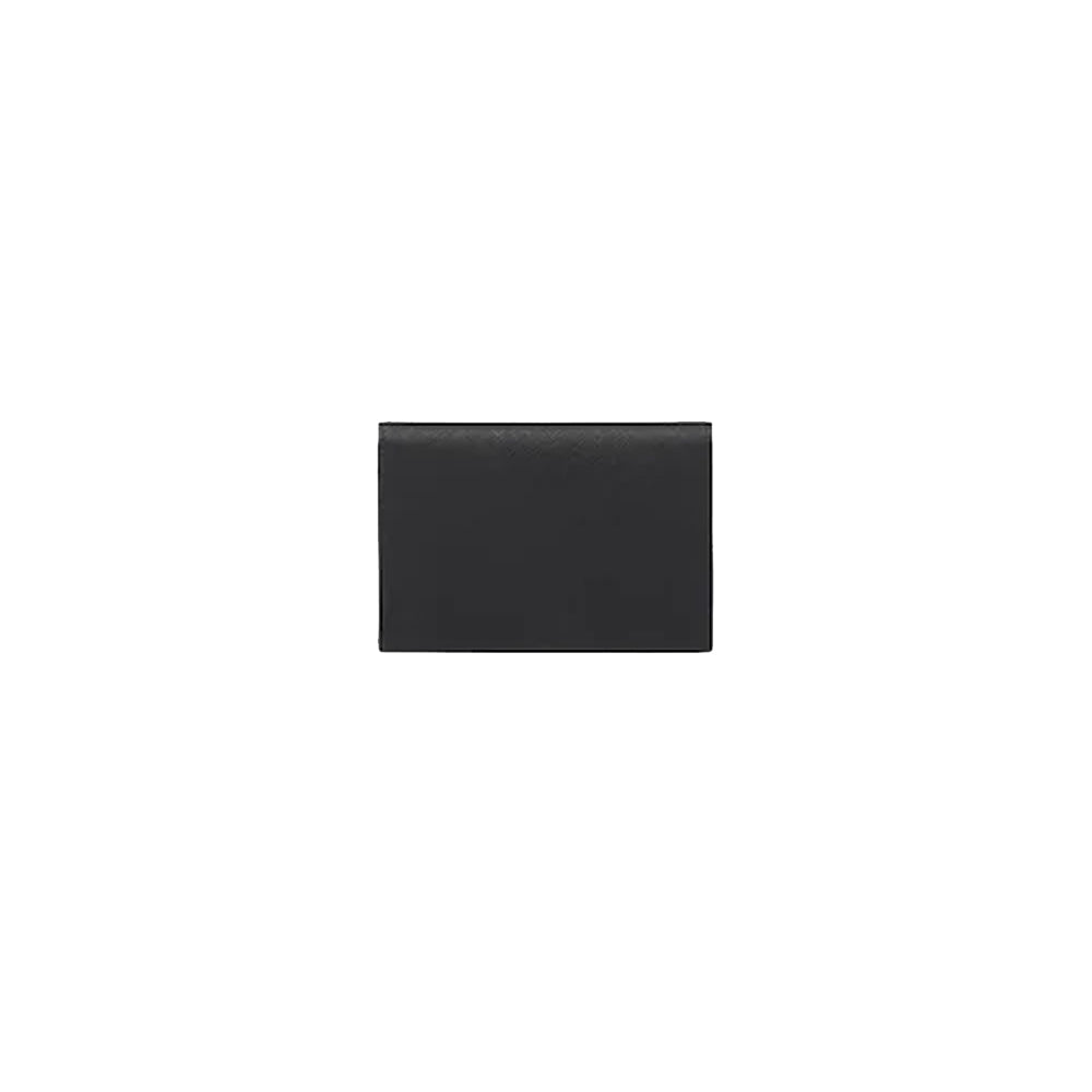 This refined, modern, Saffiano-leather document pouch features an iconic, enameled-metal triangle logo, which first appeared on trunks designed by Mario Prada in 1913.