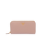 This zipper wallet is made of Saffiano, an iconic Prada material: calf leather of the highest quality, defined by a crosshatch texture and a waxed finish. The lettering logo decorates the accessory.
