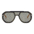 Square, injection-molded shield frame in black, with palladium-colored metal temples and yellow tips. The single gray lens is decorated with a silver mirror-effect printed FF logo. Adjustable nose pads branded with the Fendi logo.