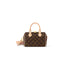 - The Speedy Bandoulière 20 hand bag takes on classic Louis Vuitton allure in Monogram canvas with natural cowhide-leather trim and gold-color hardware. Inspired by the House’s emblematic travel bag, its distinctive shape is adorned with two rolled-leather top handles, padlock. A detachable strap with seasonal fresh pink and orange accents, signed Louis Vuitton, enables shoulder and cross-body wear.