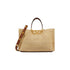 - Valentino Garavani medium straw Summer Tote bag featuring a metallic VLogo Signature and red leather detail on the sides. The shoulder strap features the iconic maxi studs.